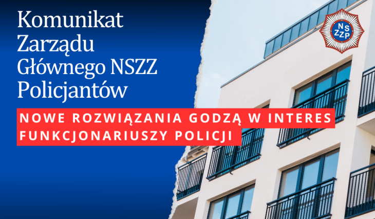Zarząd Główny NSZZ Policjantów z najwyższym zaniepokojeniem przyjął informację o planowanych, nieuzgodnionych z nami zmianach w projekcie ustawy mieszkaniowej, które w ostatniej chwili mają modyfikować sposób obliczania wysokości nowego dodatku mieszkaniowego. Zgodnie z tymi propozycjami świadczenie miałoby być ustalane nie – jak wcześniej uzgodniono – w oparciu o miejsce pełnienia służby, lecz miejsce zamieszkania funkcjonariusza.